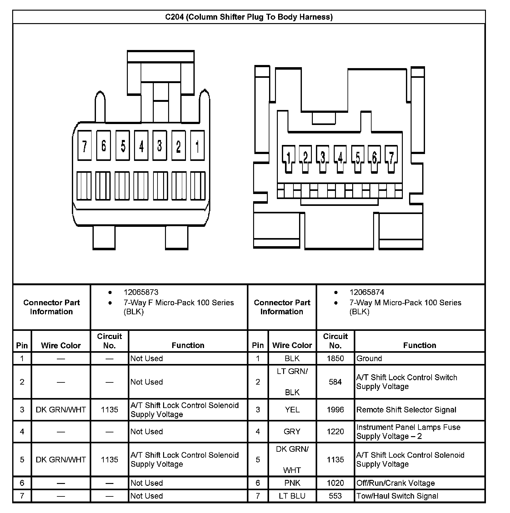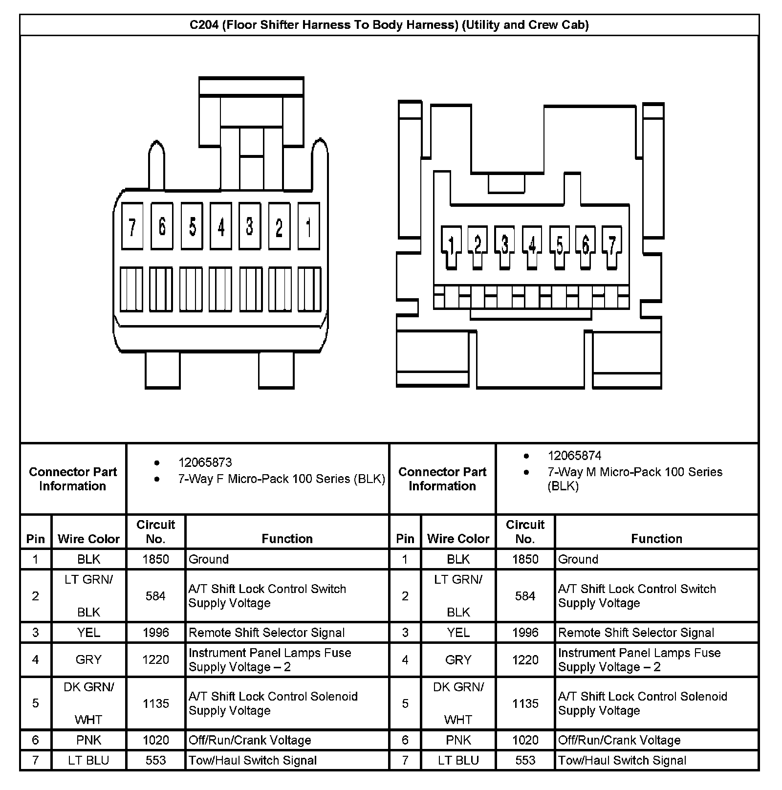 C204 (Floor Shifter Harness To Body Harness) (Utility And Crew Cab):