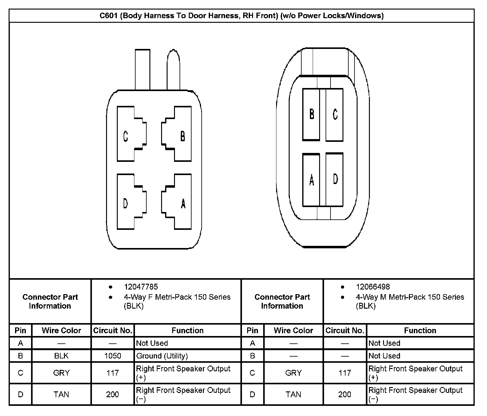 C601 (Body Harness To Door Harness, RH Front) (w/o Power Locks/Windows):