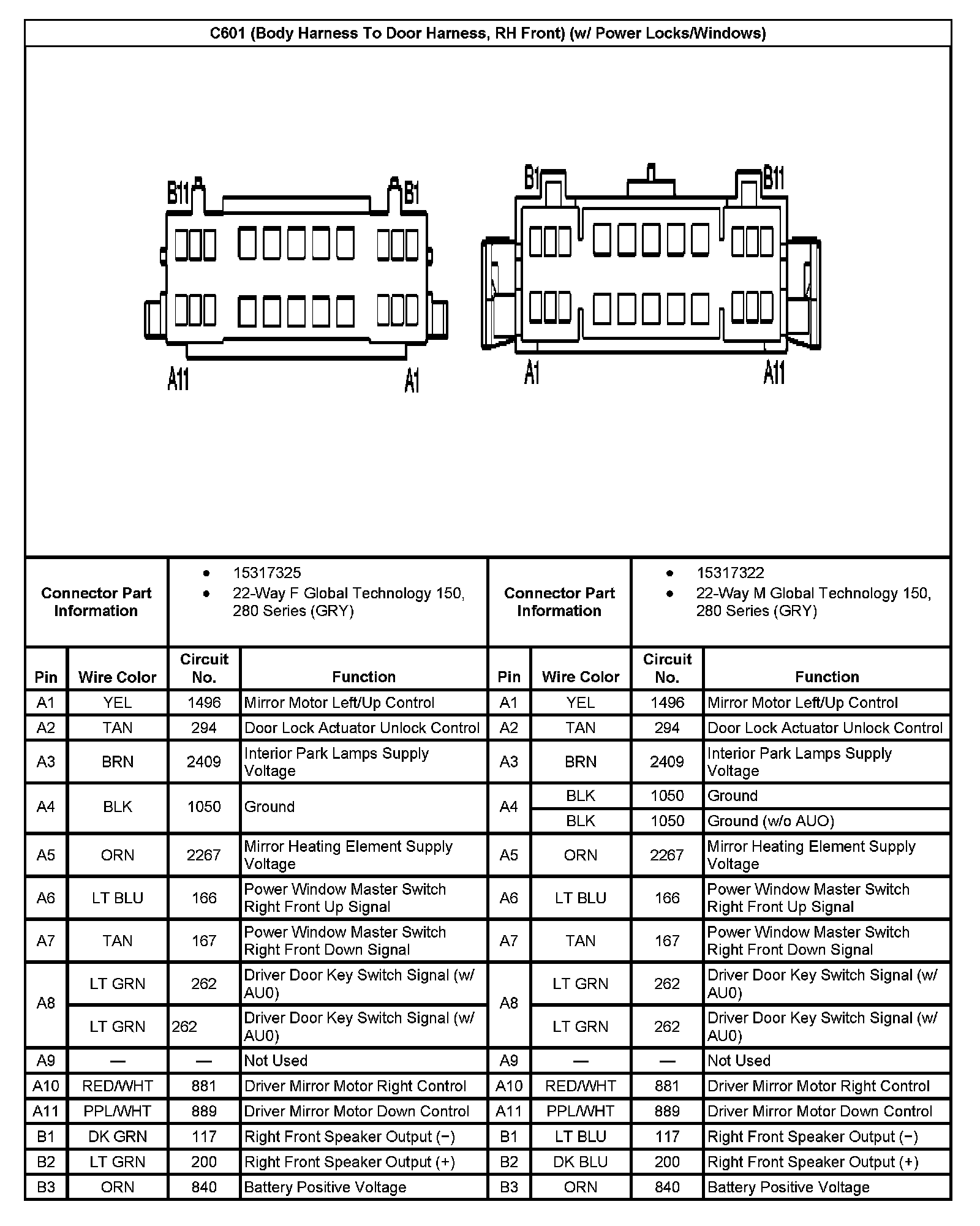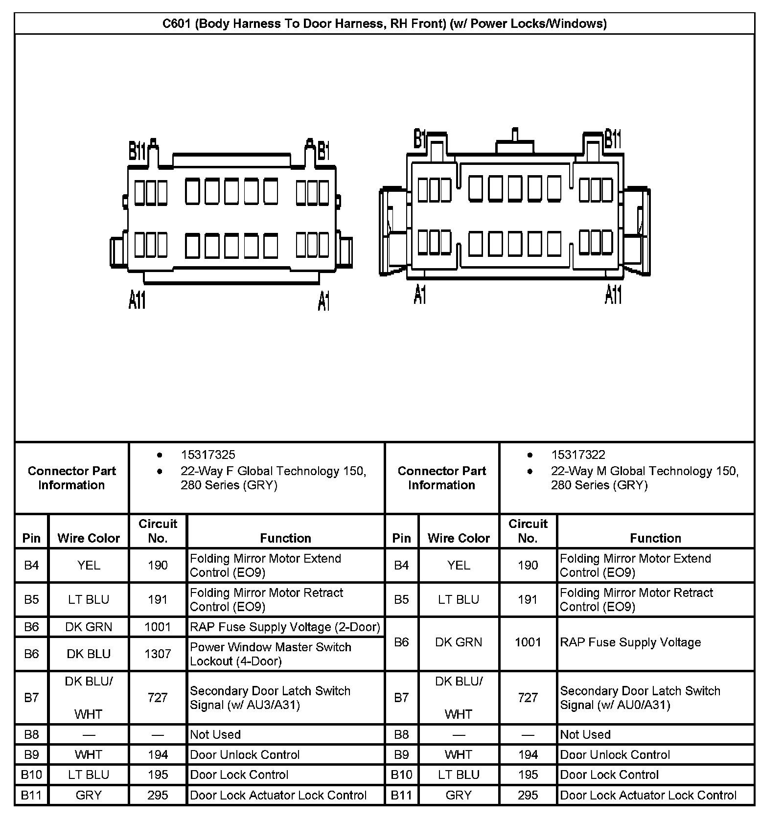 C601 (Body Harness To Door Harness, RH Front) (w/ Power Locks/Windows) Part 2: