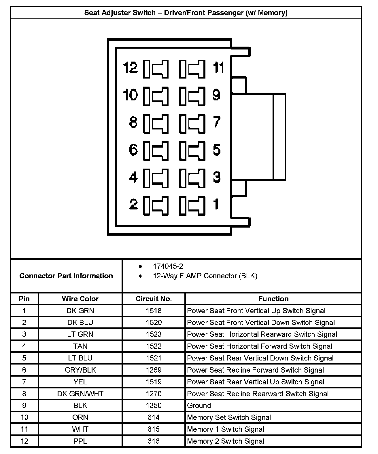 Seat Adjuster Switch - Driver/Front Passenger (w/ Memory):