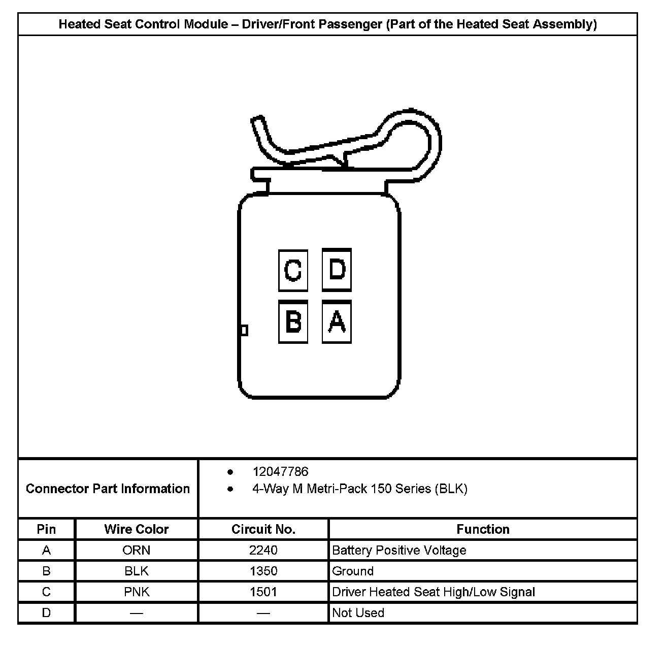 Heated Seat Control Module - Driver/Front Passenger (Part Of The Heated Seat Assembly):