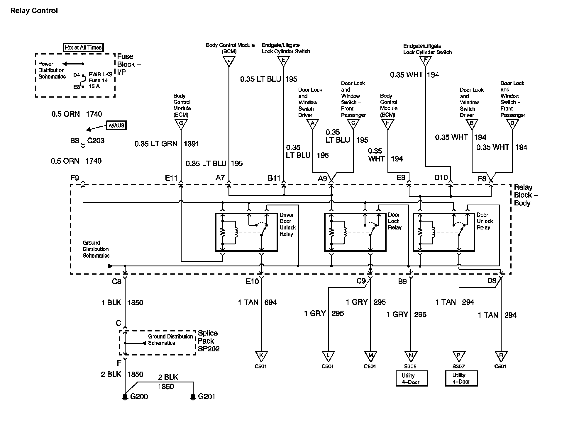 Locations: The locations for the Connectors, Grounds, Splices, and Grommets shown within these diagrams can be found via their numbers at Vehicle Locations. Locations