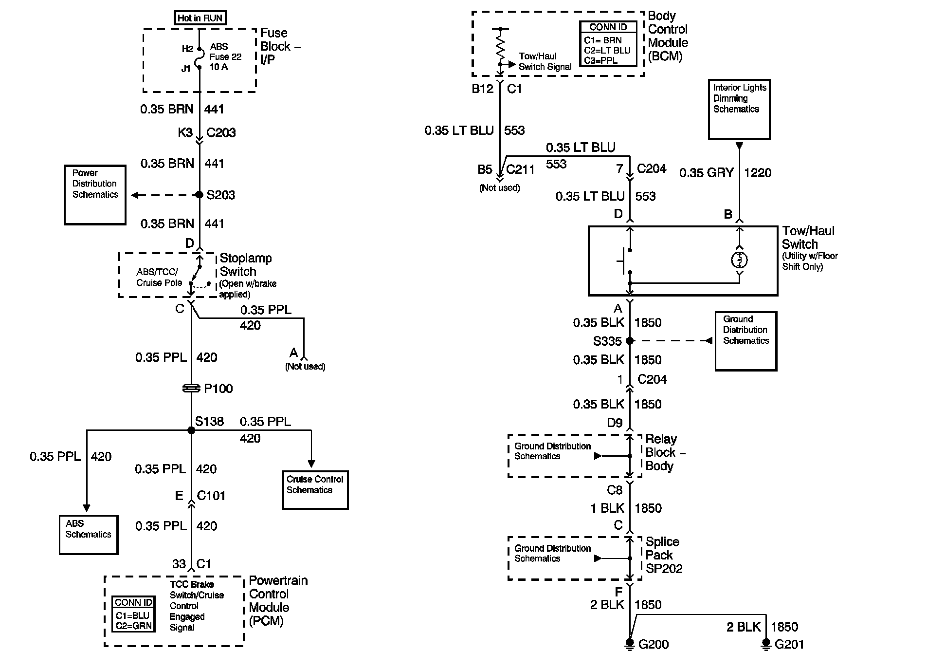 Brake Switch Input (4.3L) and Tow/Haul Switch