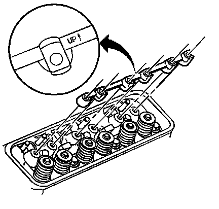 2. Important: Be sure that the arrow on the valve rocker arm support is in the up position.