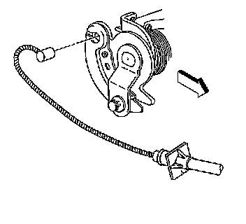 7. Disconnect the cruise control cable, if equipped from the throttle shaft and the accelerator cable bracket.