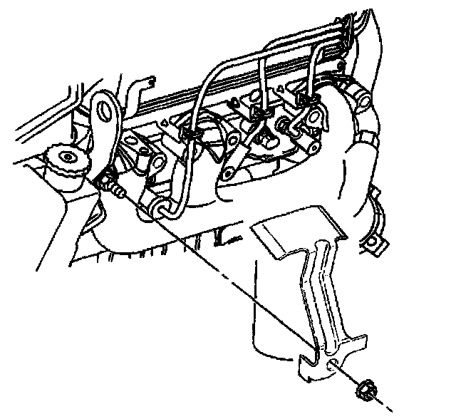 14. Remove the exhaust manifold bolts and the stud.