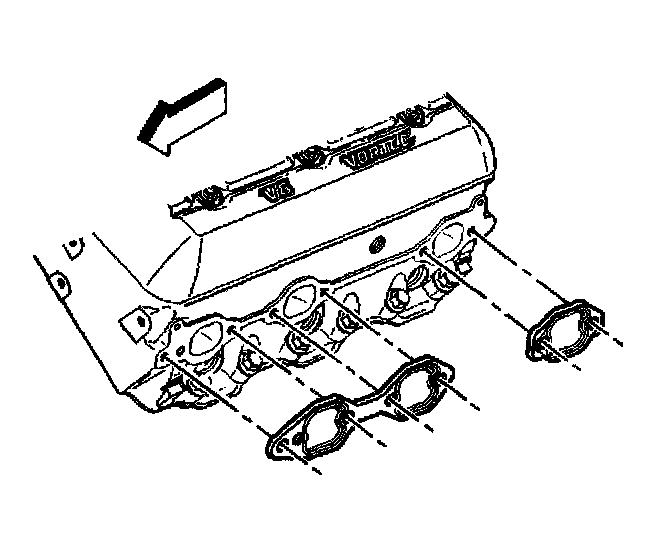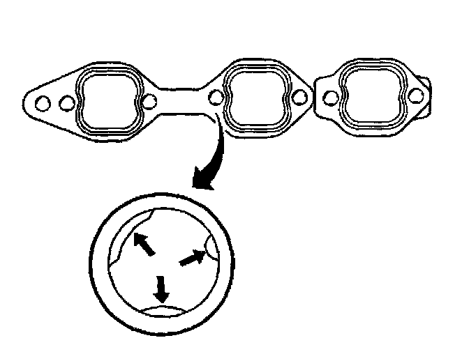 Important: To assist in installing the exhaust manifold to the engine, the tabs on a NEW exhaust manifold gasket will hold the gasket and bolts in place.