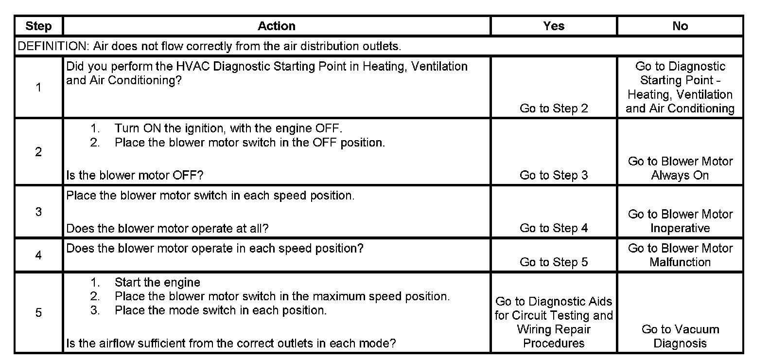 3. This step tests for a blower motor that does not operate regardless of the desired blower motor speed.