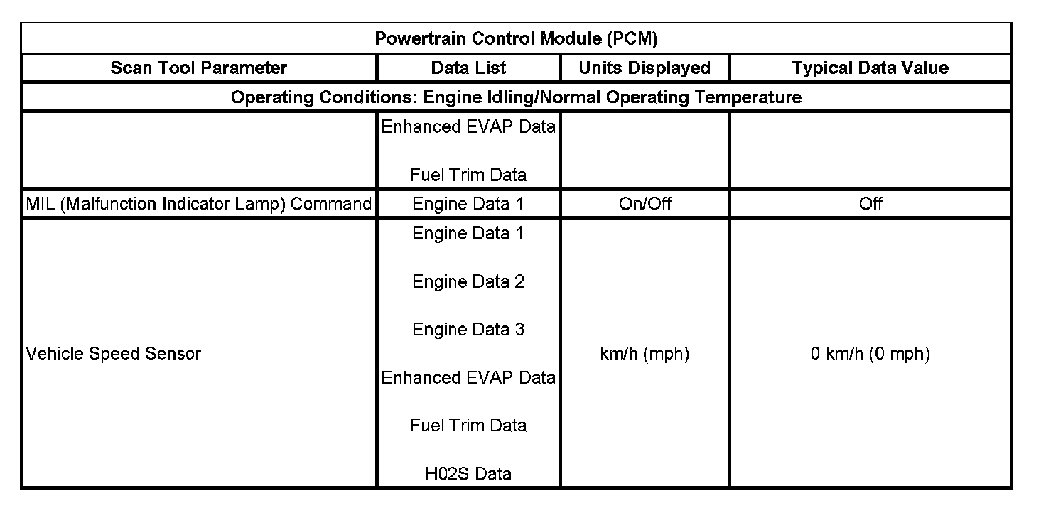Scan Tool Data List - Powertrain Control Module (PCM)