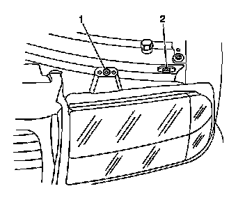 Two adjusting screws control the horizontal (2) and vertical (1) aiming of each headlamp assembly.