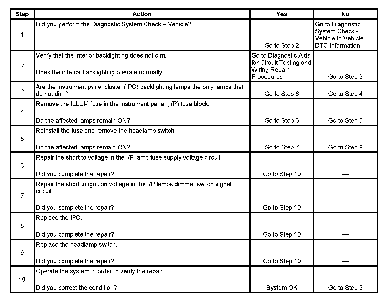 Interior Backlighting Does Not Dim