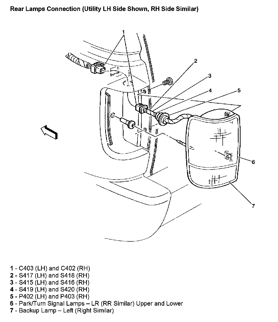 Rear Lamps Connection (Utility LH Side Shown, RH Side Similar):