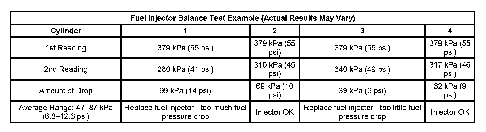 Fuel Injector Balance Test Example (Actual Results May Vary):