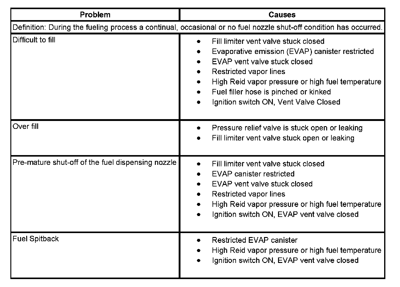 Poor Fuel Fill Quality: