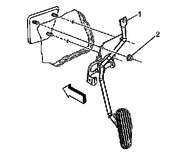 5. Remove the accelerator pedal mounting nuts (2).