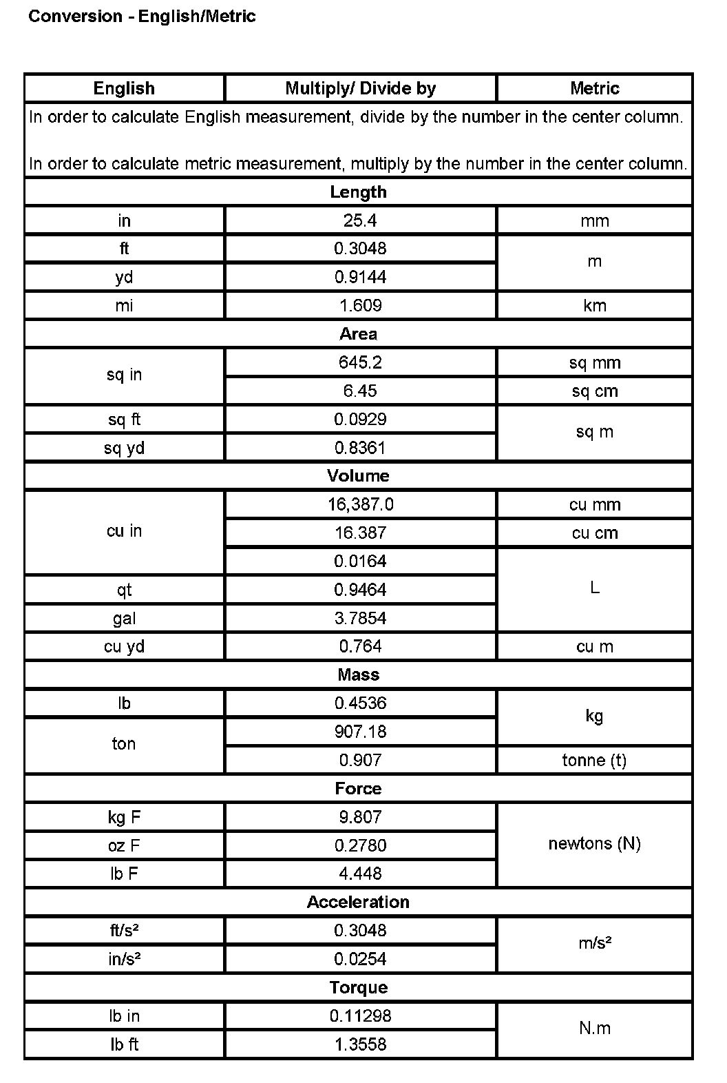 Conversion - English/Metric