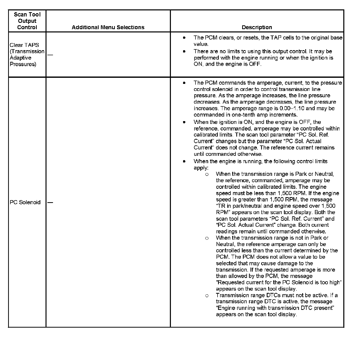Scan Tool Output Controls