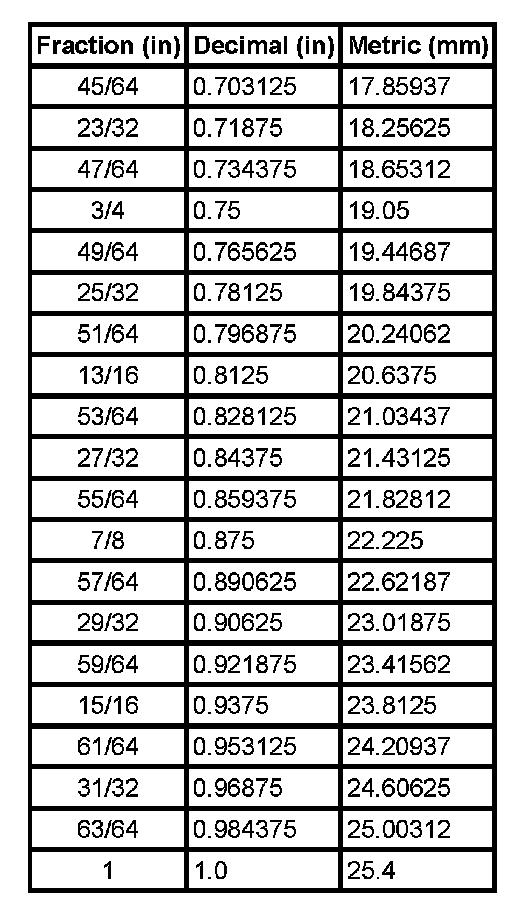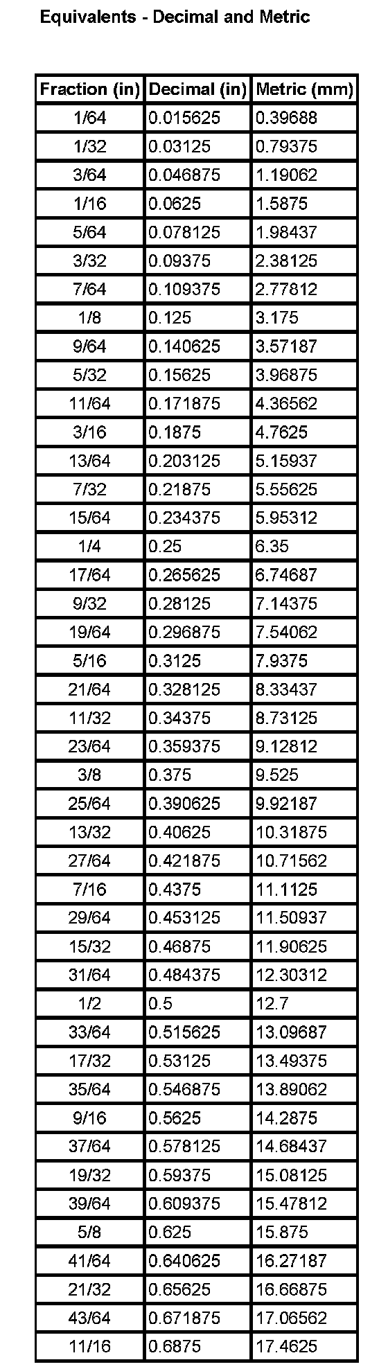 Equivalents - Decimal And Metric