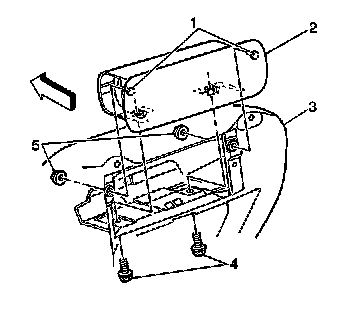 4. Remove the fasteners (4,5) that retain inflatable restraint module to the instrument panel.