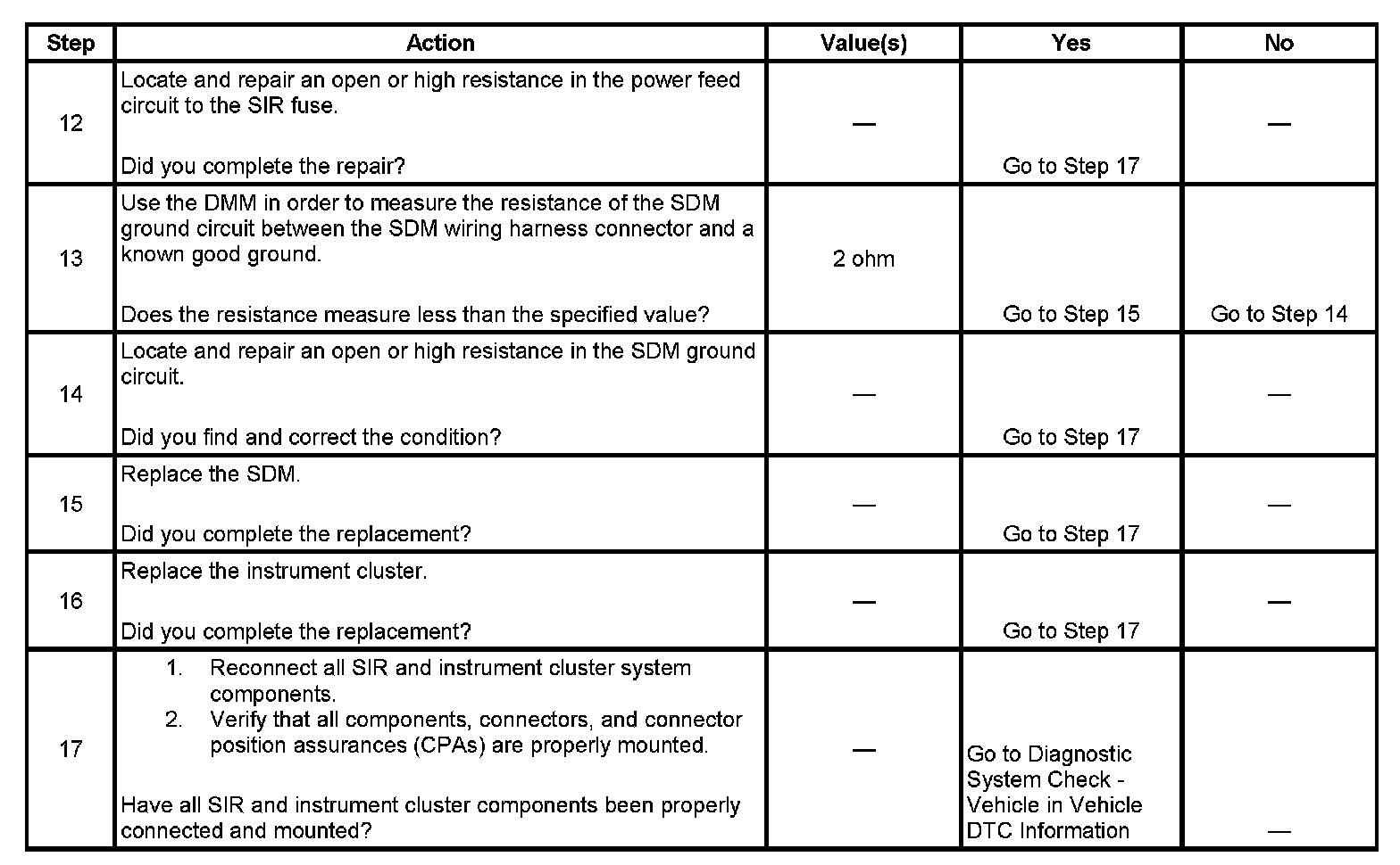 13. This step tests for an open or high resistance in the SDM ground circuit or if there is a malfunctioning SDM.