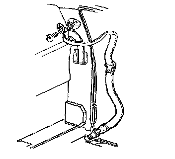 1. Remove the bolt that retains the lower seat belt anchor plate to the vehicle.