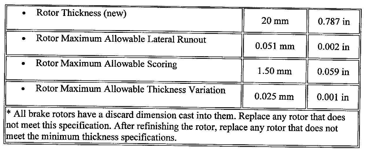 Disc Brake Component Specifications