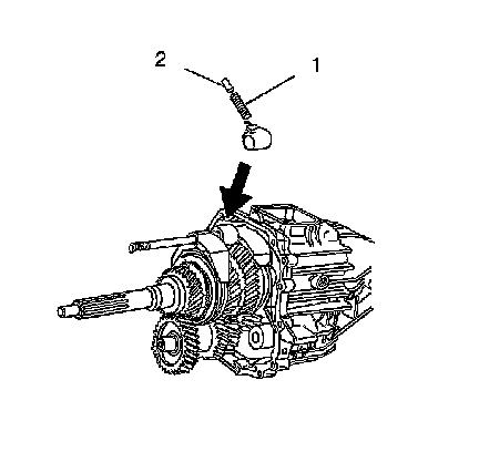 2. Install the spring (1) and the ball plunger (2) into the shift lever.