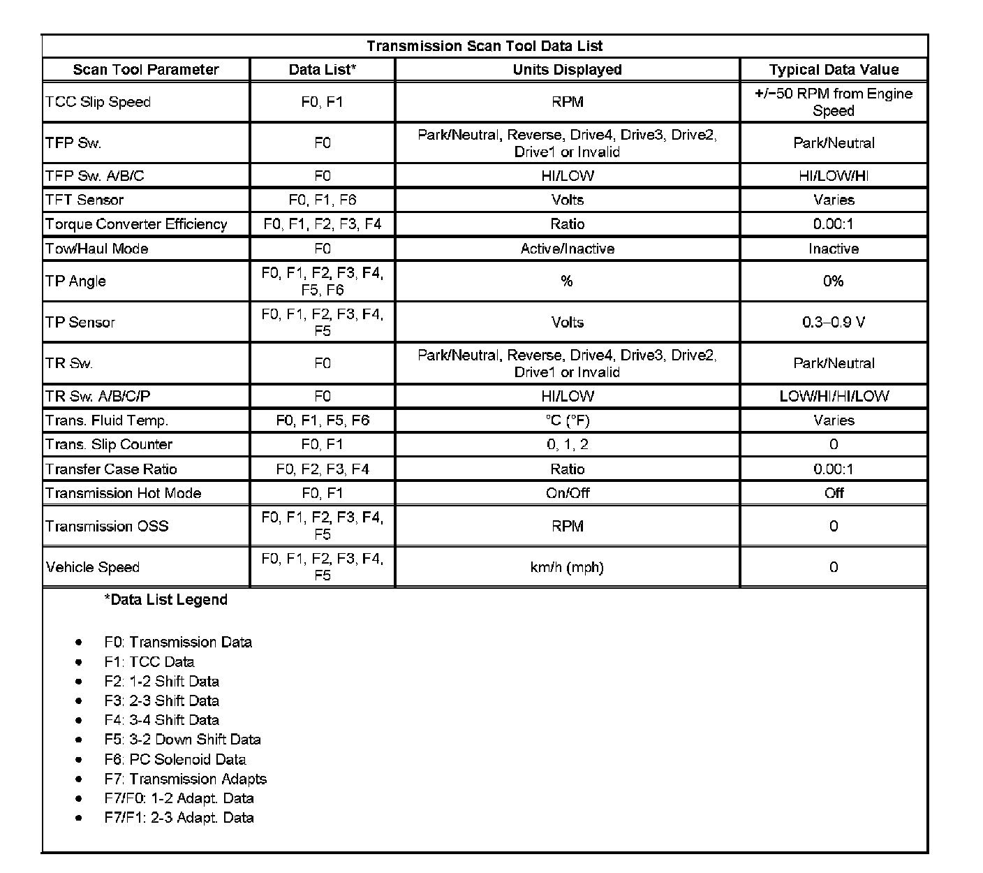 Only the parameters listed are used for diagnosing. If a scan tool displays other parameters, the values are not recommended by General Motors for use in diagnosis.