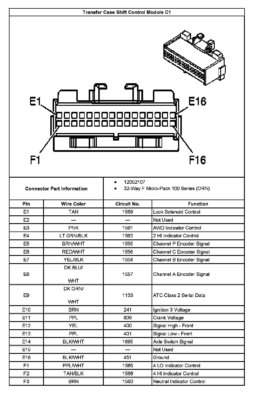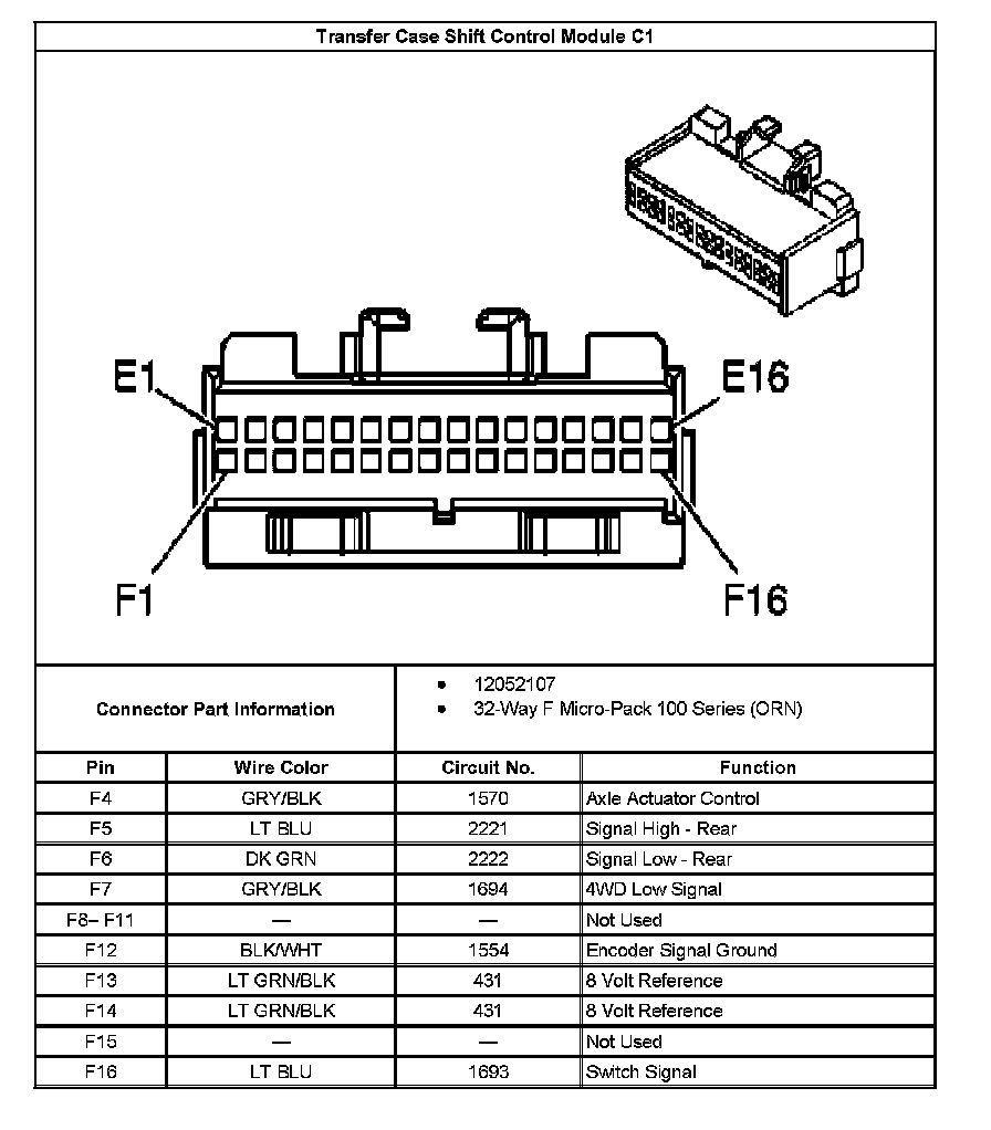 Transfer Case Shift Control Module C1 Connector End View 2: