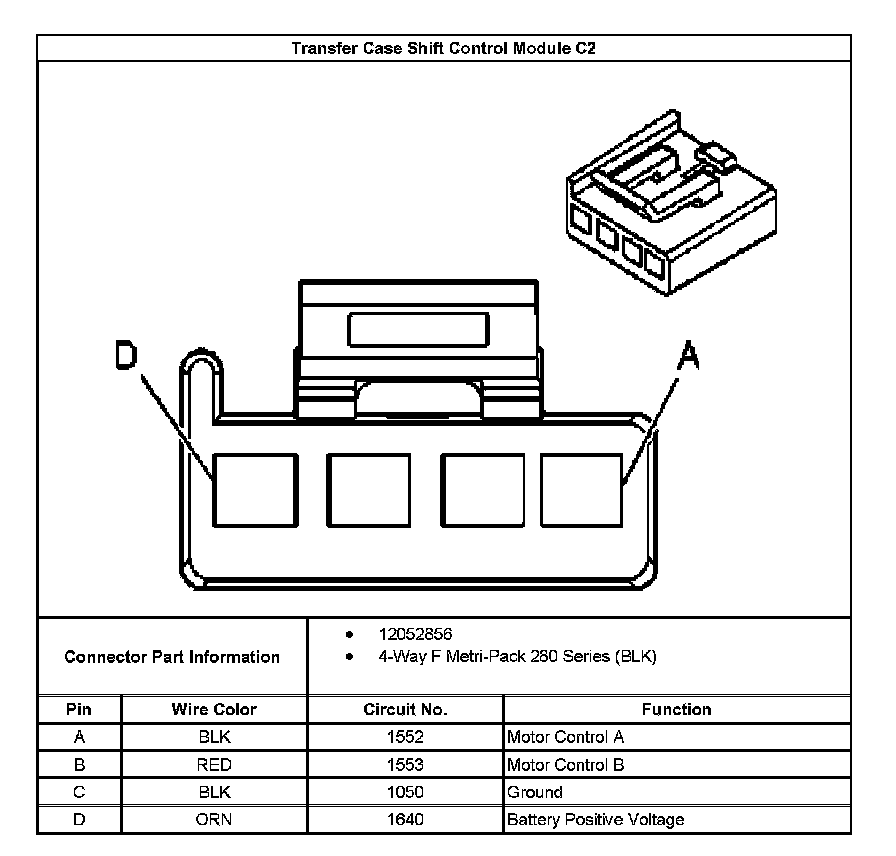 Transfer Case Shift Control Module C2 Connector End View: