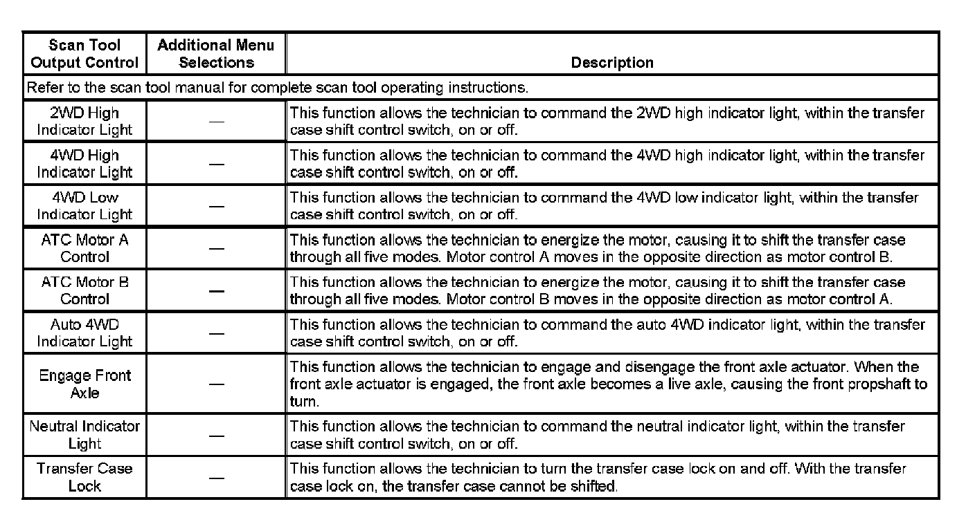 Scan Tool Output Controls