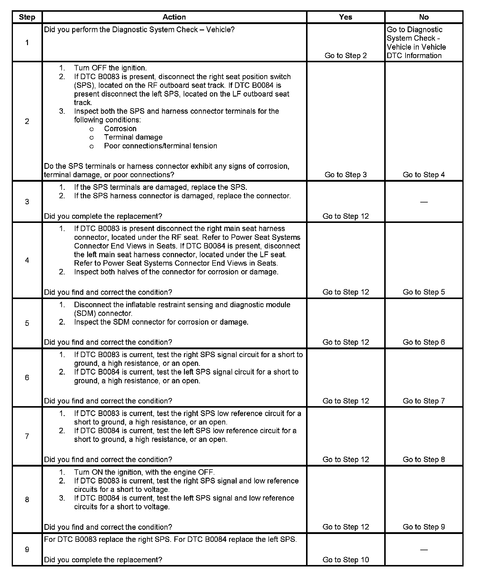 6. This step tests for a short to ground, a high resistance, or an open in the SPS signal circuit.