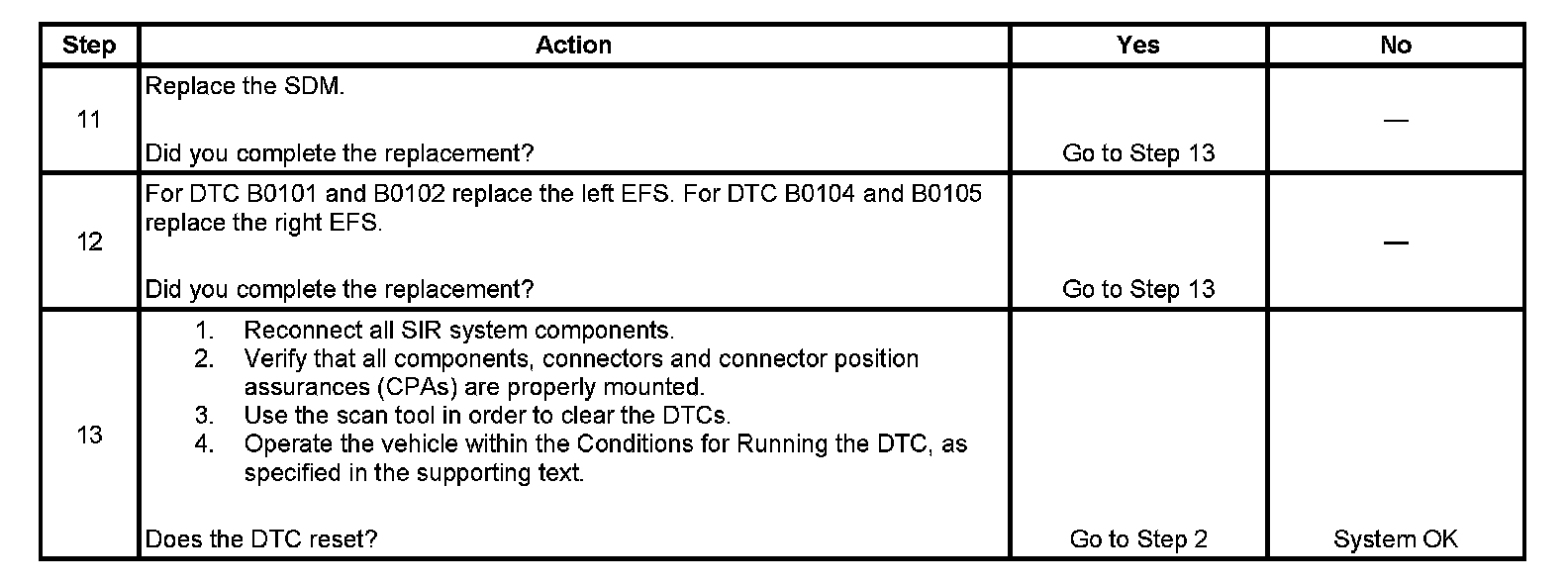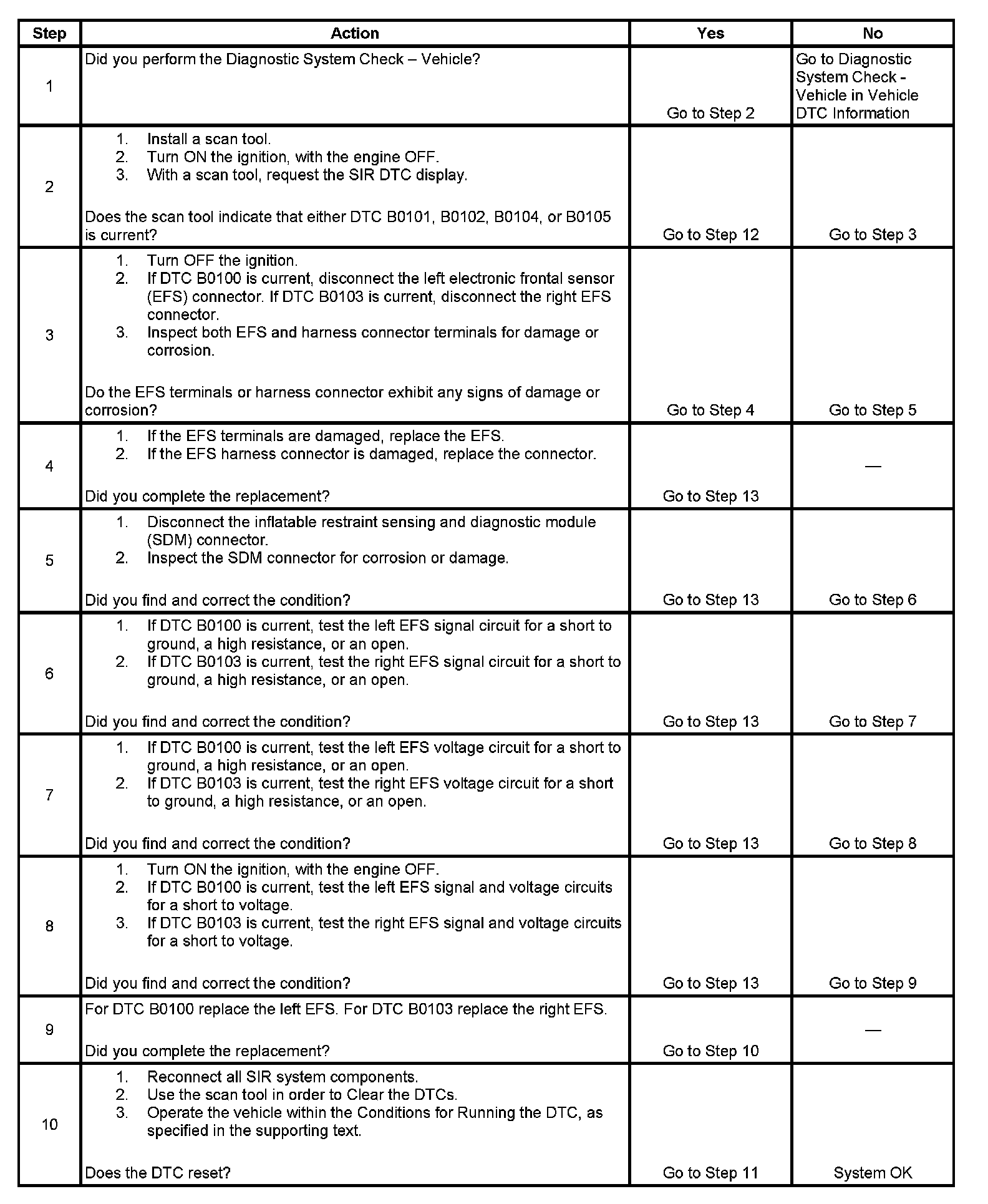 - DTC B0101and B0104 will set when the SDM has received 4 consecutive NOK (Not OK) messages from the EFS.