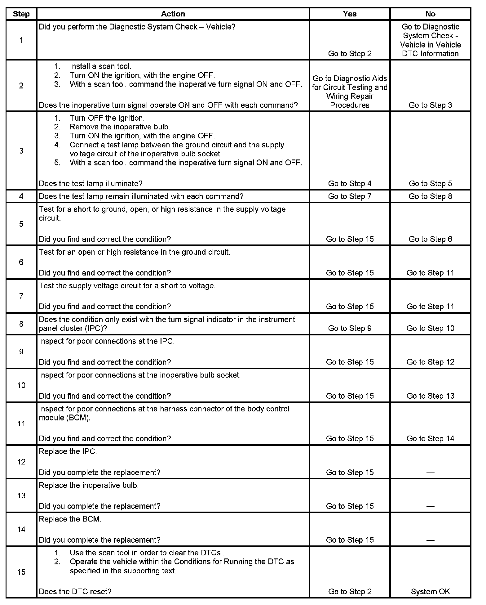 - When the BCM receives a left turn signal command and the left rear stop/turn lamp supply voltage circuit is open, shorted to ground, or shorted to voltage