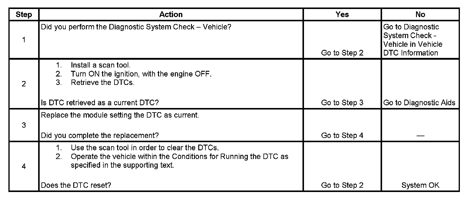 - If this DTC is retrieved as both a current and history DTC, replace the module.