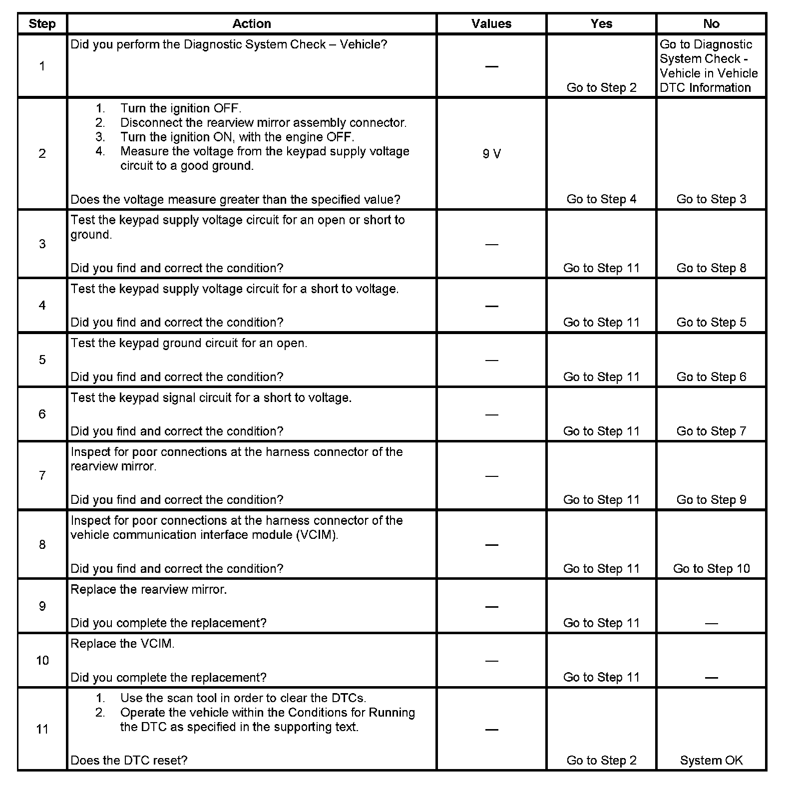 - The VCIM powers the button assembly through the keypad supply voltage circuit for 11.5 milliseconds, turns the power off, then waits for 50 milliseconds and sees a voltage value greater than 1.8 volts on this circuit.
