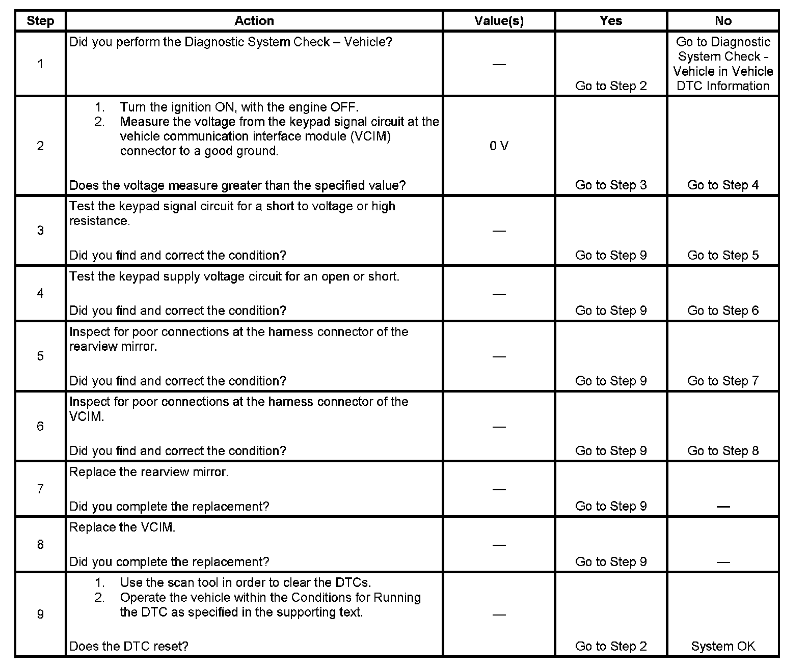 2. This step tests the at rest state of the keypad signal circuit.