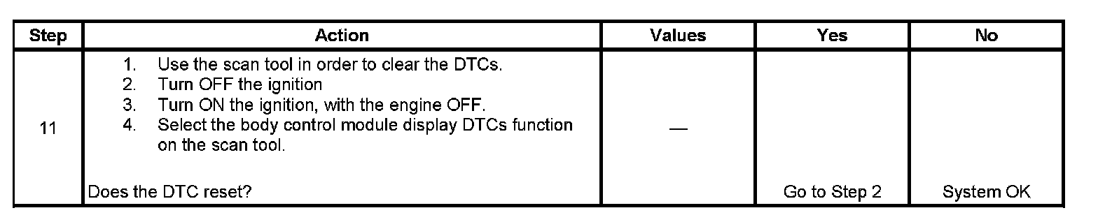 - The body control module (BCM) signal input is less than 0.4 volts for 1 second.