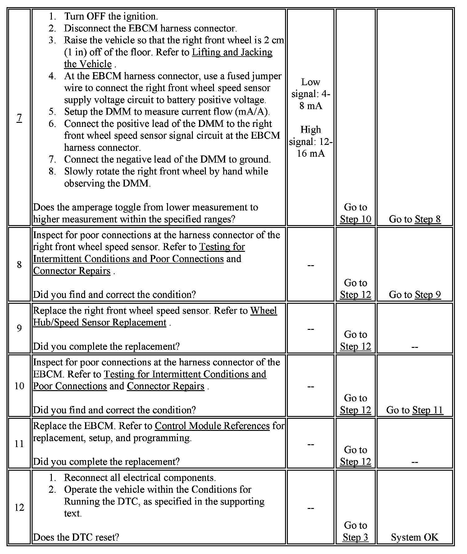7. The front wheel speed sensors produce a high resolution signal. Therefore, the slightest rotation of the wheel causes the signal to toggle from high to low.