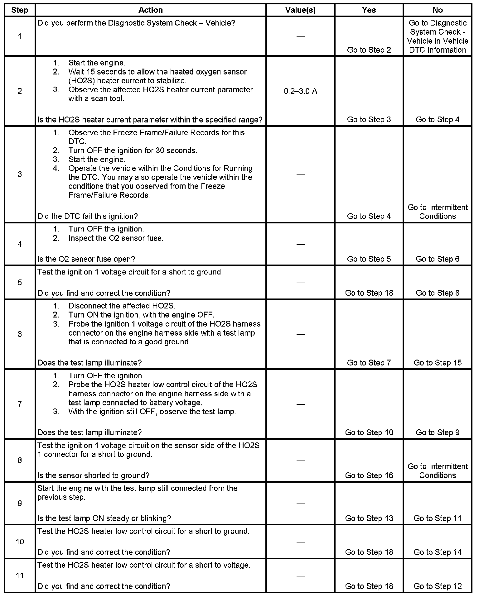 Heated oxygen sensors (HO2S) are used for fuel control and post catalyst monitoring. Each HO2S compares the oxygen content of the surrounding air with the oxygen content in the exhaust stream. The HO2S must reach operating temperature to provide an accurate voltage signal. A heating element inside the HO2S minimizes the time required for the sensor to reach operating temperature. Voltage is provided to the heater by the ignition 1 voltage circuit through a fuse. With the engine running, ground is provided to the heater by the HO2S heater low control circuit, through a low side driver within the powertrain control module (PCM).
