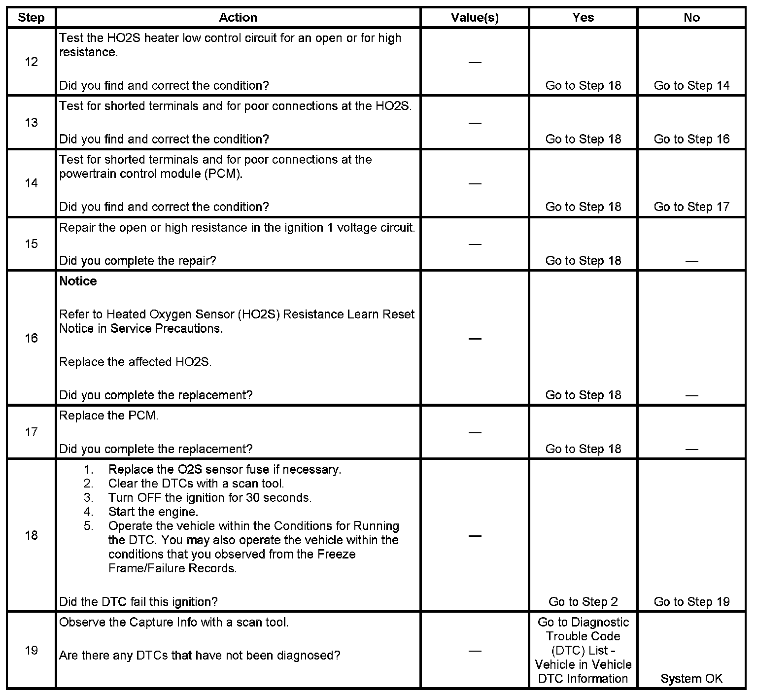 The PCM commands the heater ON or OFF to maintain a specific HO2S operating temperature range. The PCM monitors the voltage on the HO2S heater low control circuit for heater fault diagnosis. If the PCM detects that the HO2S heater low control circuit voltage is not within a specified range, DTC P0030 sets for HO2S 1, or DTC P0036 sets for HO2S 2.