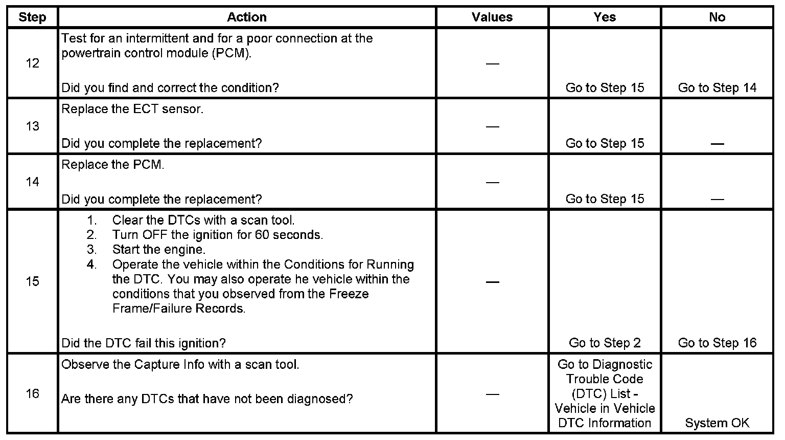 - A current DTC, Last Test Failed, clears when the diagnostic runs and passes.