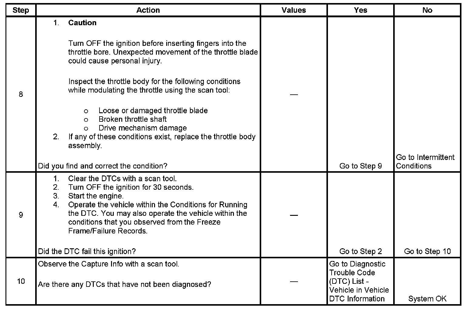 9. When the PCM detects a condition within the throttle actuator control (TAC) system, other DTCs may set due to the many redundant tests run continuously on this system. Locating and repairing one individual condition may correct more than one DTC. Keep this in mind when reviewing captured DTC info.