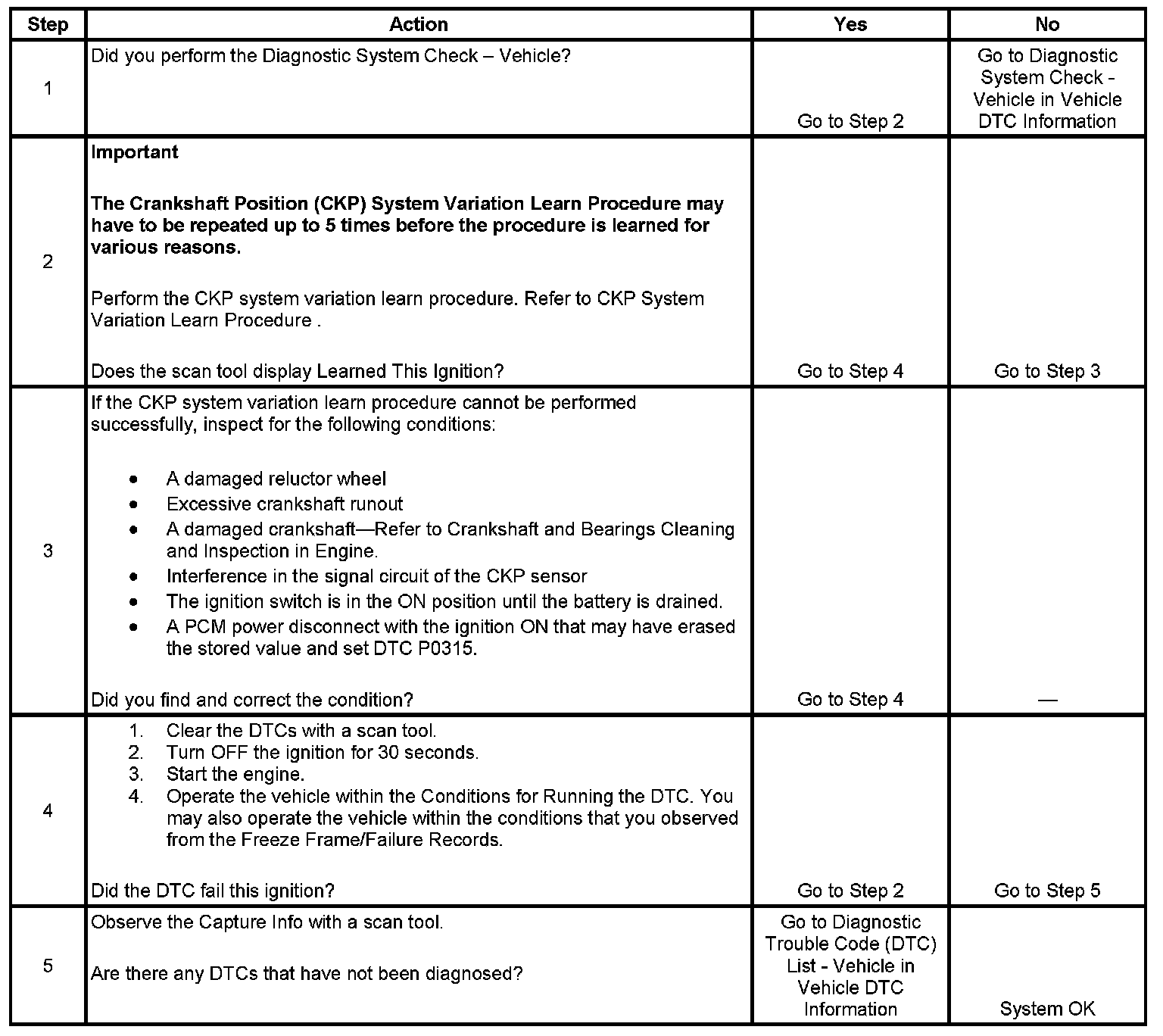 DTC P0315 Crankshaft Position (CKP) System Variation Not Learned