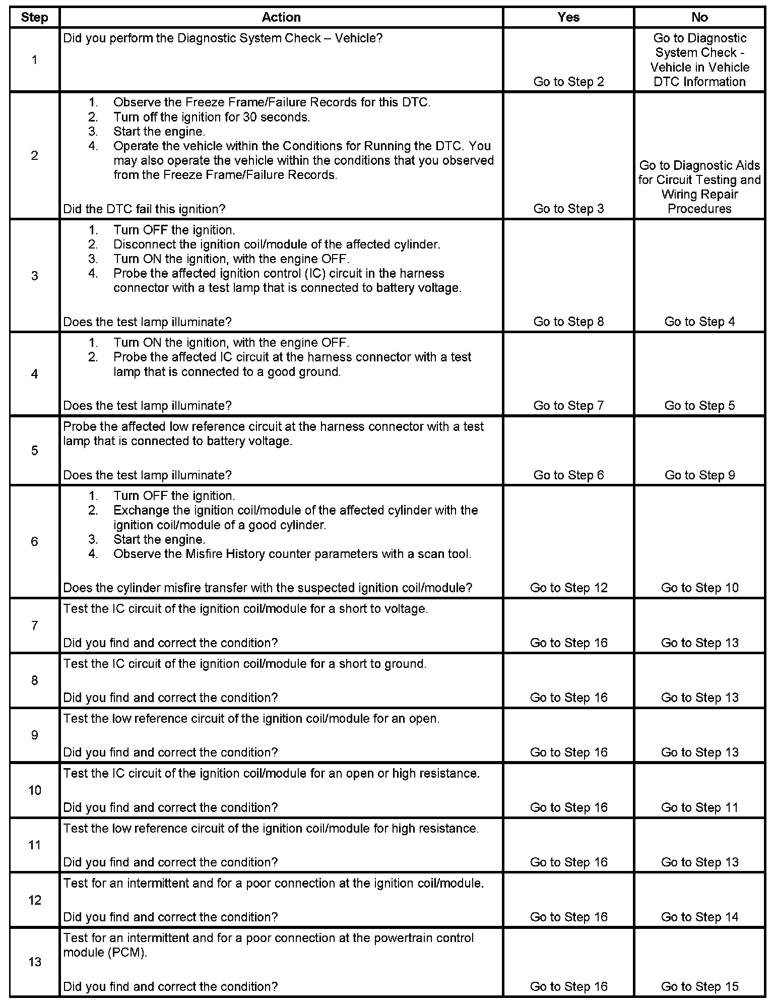 If the PCM detects an improper voltage level on the IC circuit of the ignition coil/module, it will set the corresponding DTC.