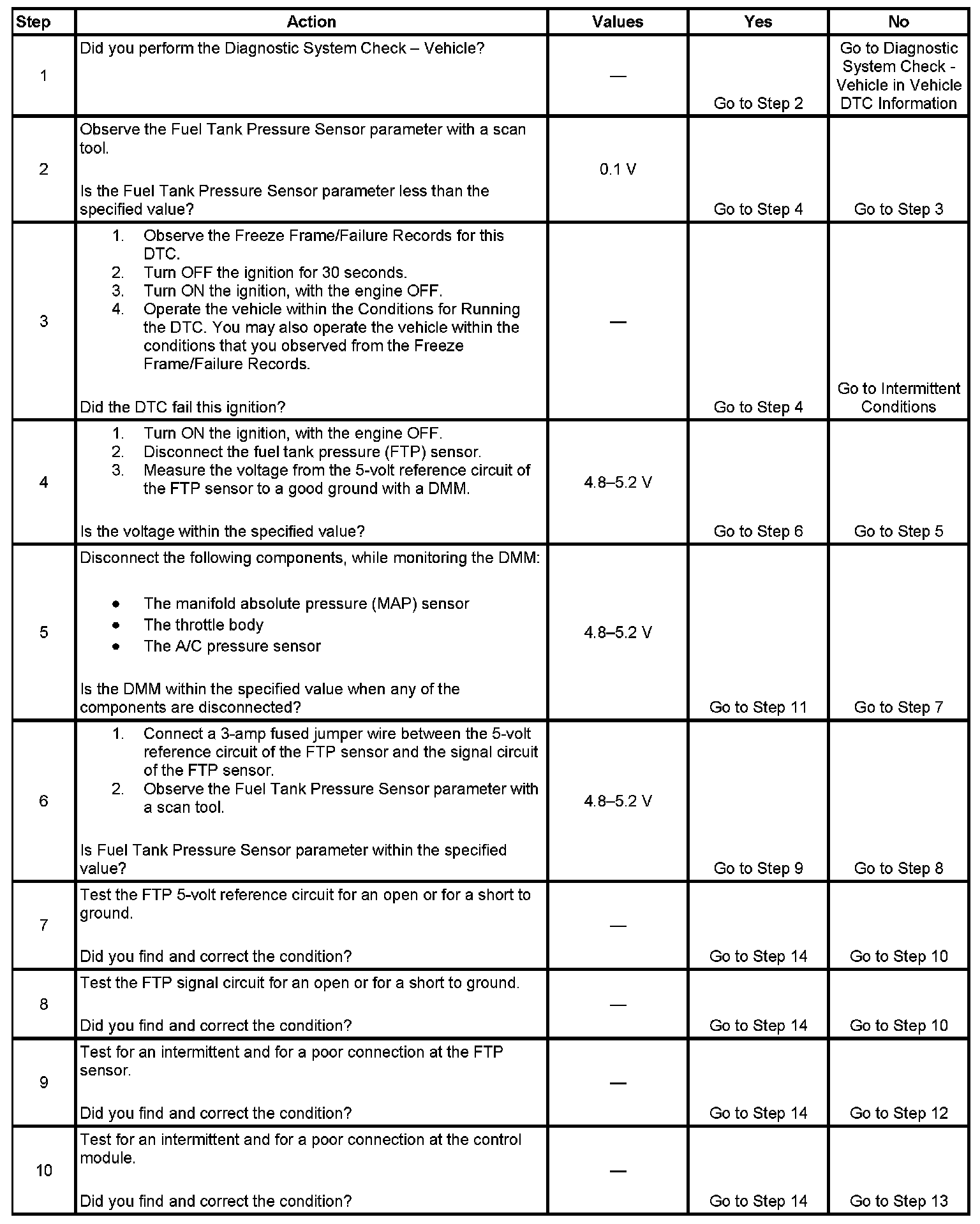 4. This step tests the 5-volt reference of the FTP sensor.