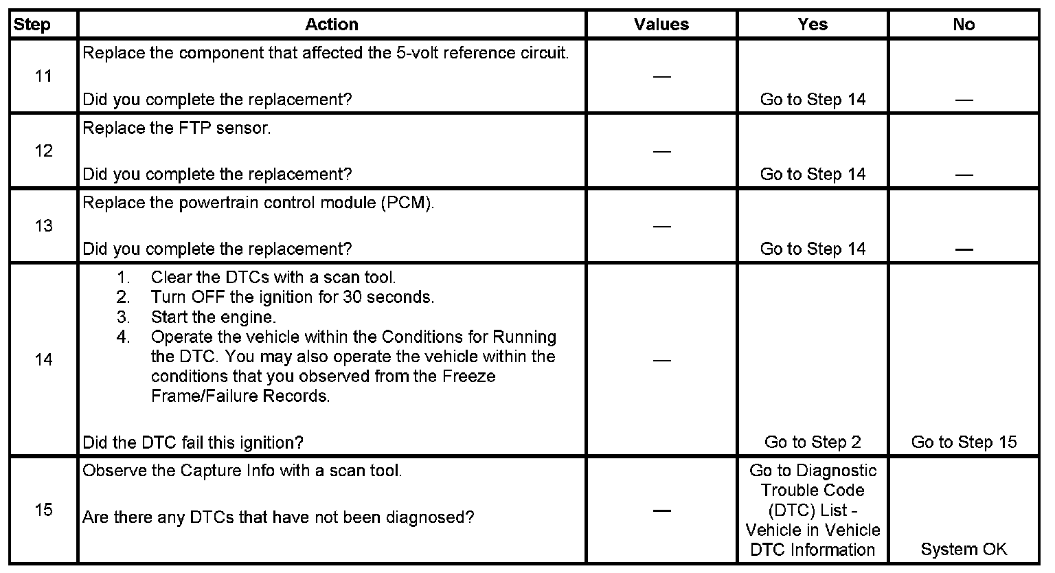 - A current DTC, Last Test Failed, clears when the diagnostic runs and passes.