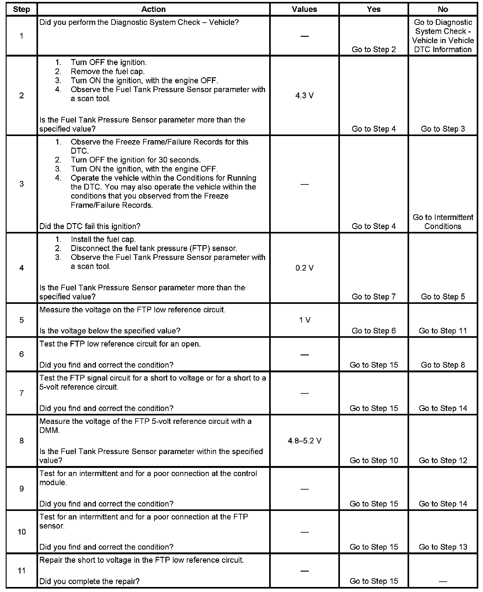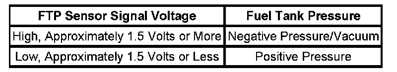 - The fuel tank pressure (FTP) sensor voltage is more than 4.9 volts.