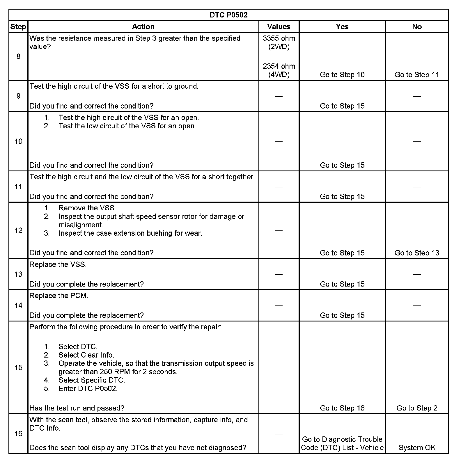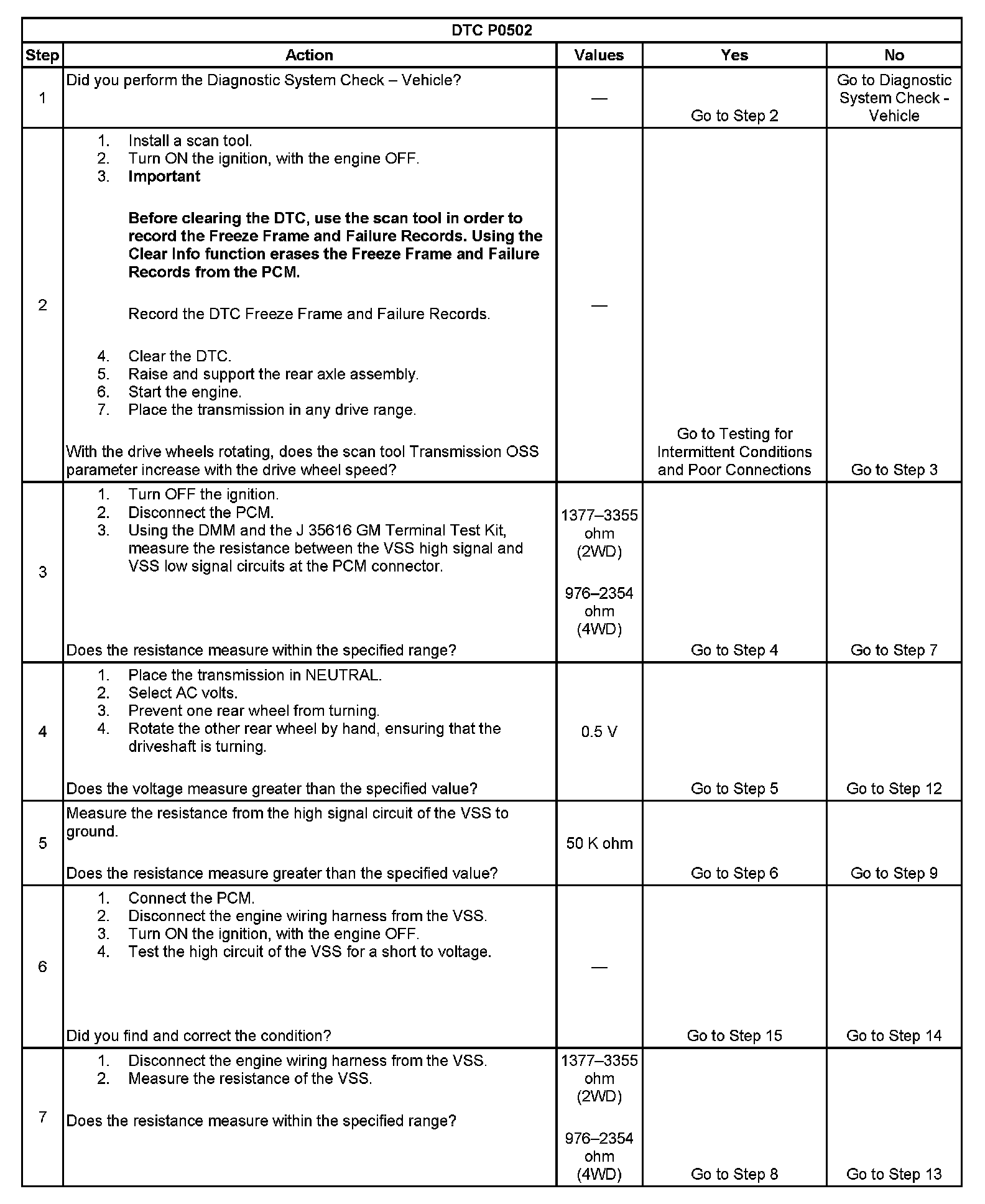 DTC P0502 Vehicle Speed Sensor (VSS) Circuit Low Voltage
