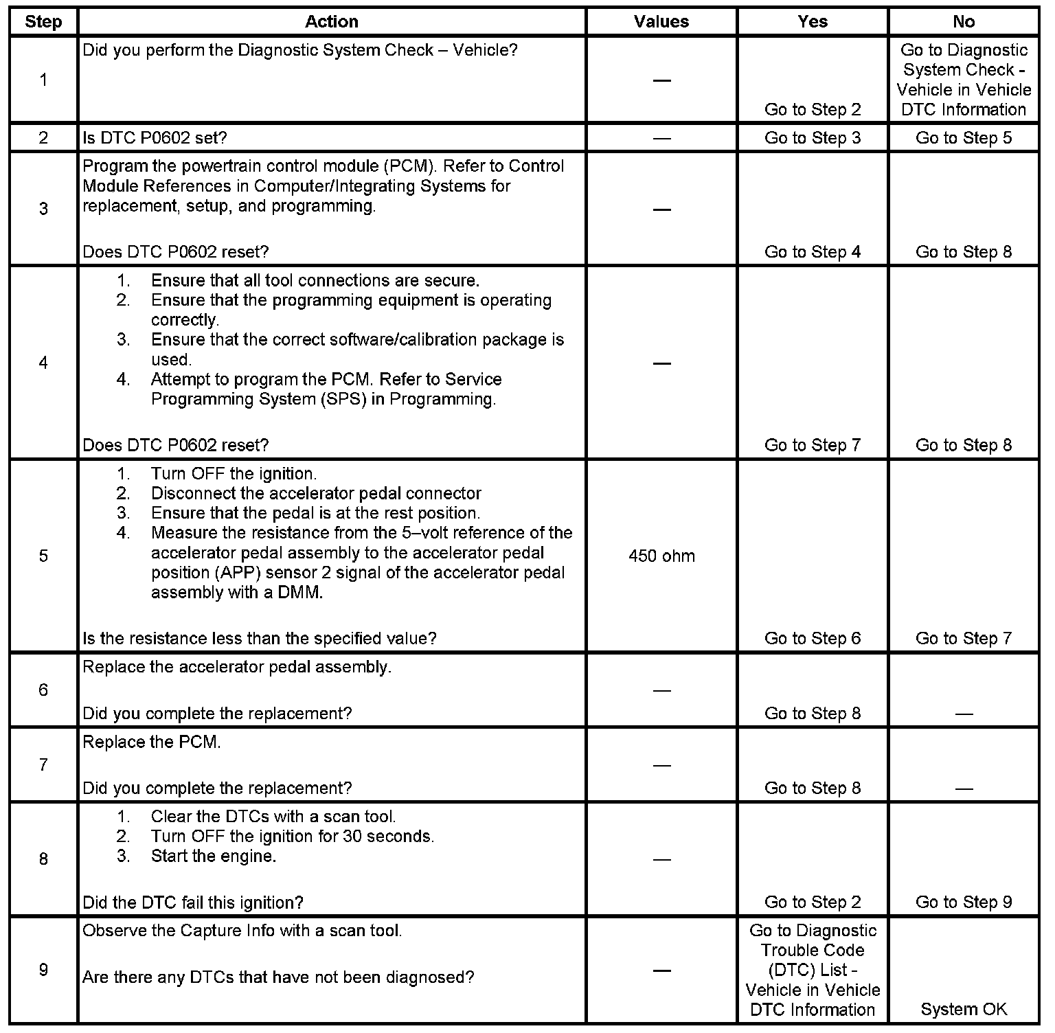 2. A DTC P0602 indicates that the PCM is not programmed.